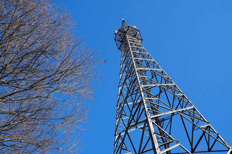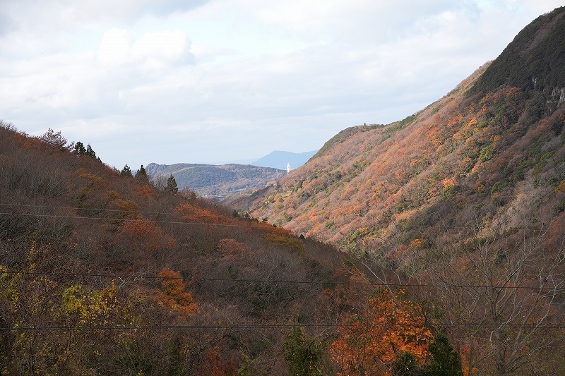 そんなことを思いながら杉林の中の道を抜けると舗装路に出た。ここがいやしの道登山口になるようだ。ここからしばらく舗装路歩き。道の脇に電波塔と共同アンテナ?の立つ横を通って行くと、背の高い杉の林の中を5mほど麓に向かって伐採された防火帯?らしき場所に着いた。
