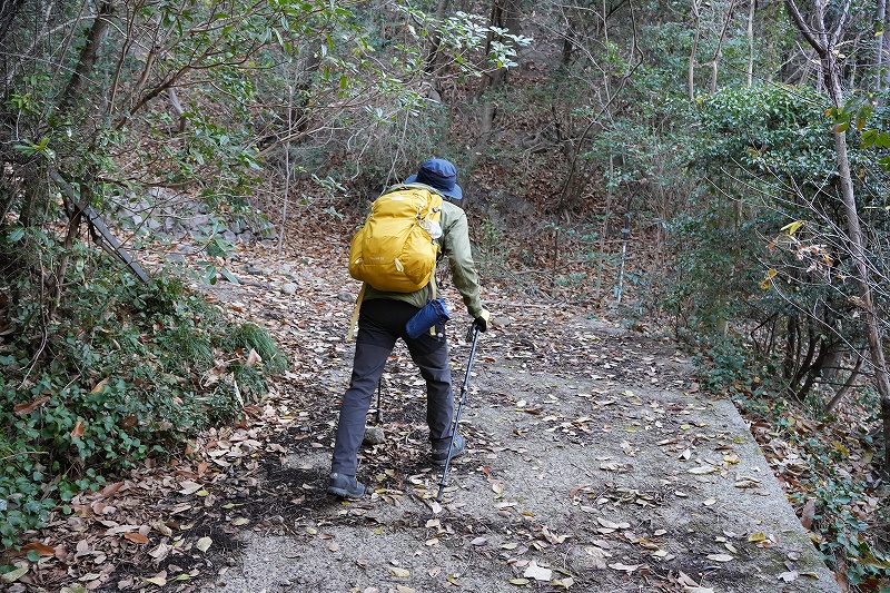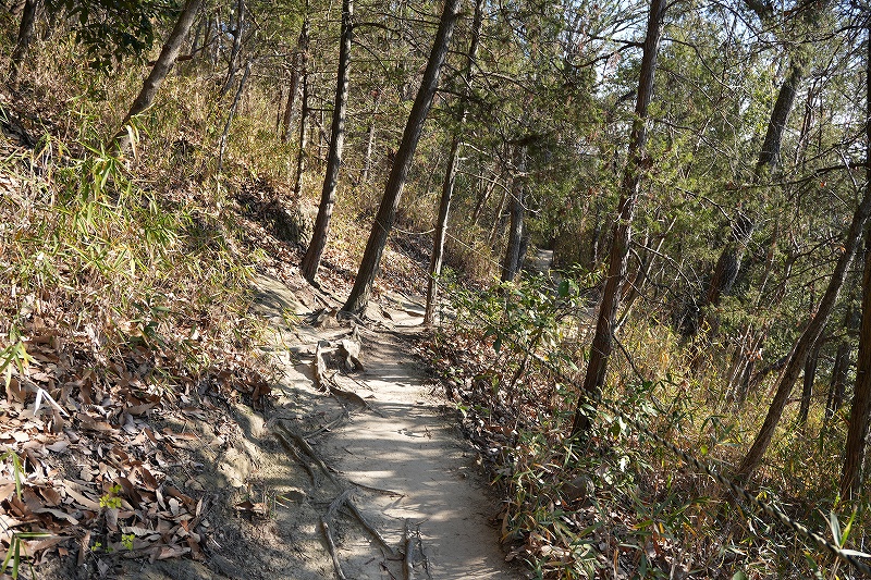 道はしだいにまた斜度を増してきた。落ち葉や松葉が積もった滑りやすい道が続いていく。