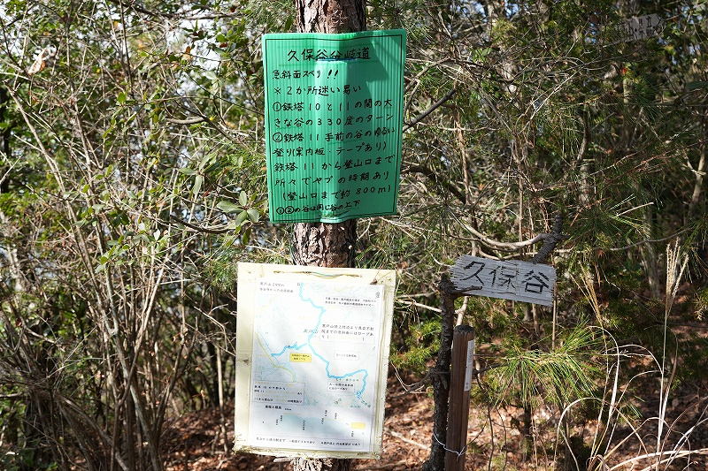 お地蔵さんから先で道は下り気味になり、奥様はそのまま歩いて行こうとするが、道の右脇に小さな道札が見えたので奥様を呼び止めた。登山道は幅の広い林道?から尾根筋へと続いていた。