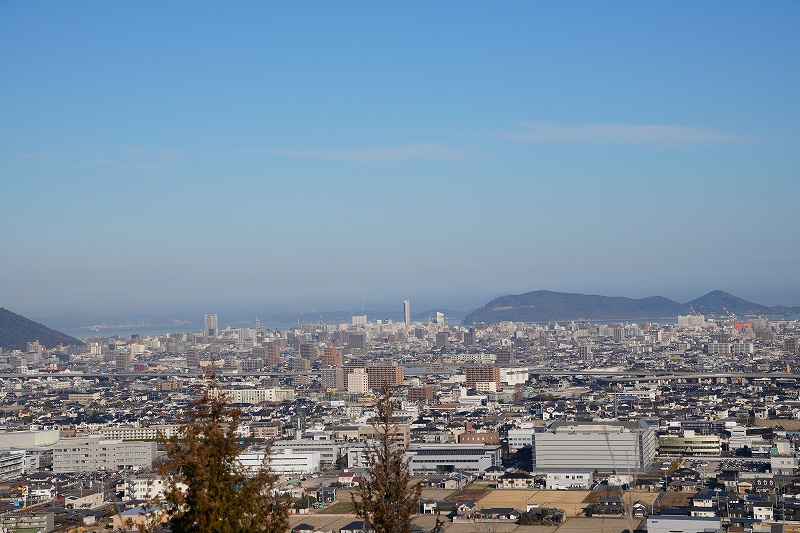 周りの木々が刈られて北側には徳島市の市街地が見渡せた。