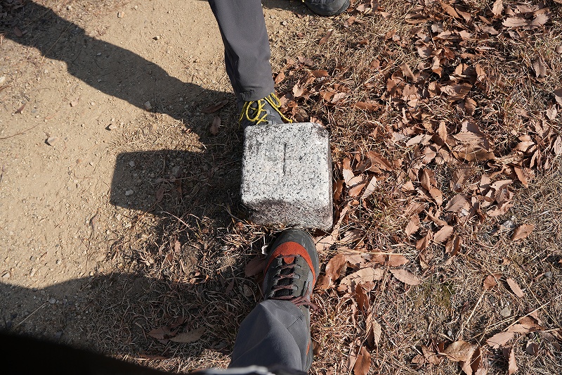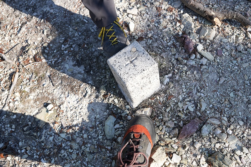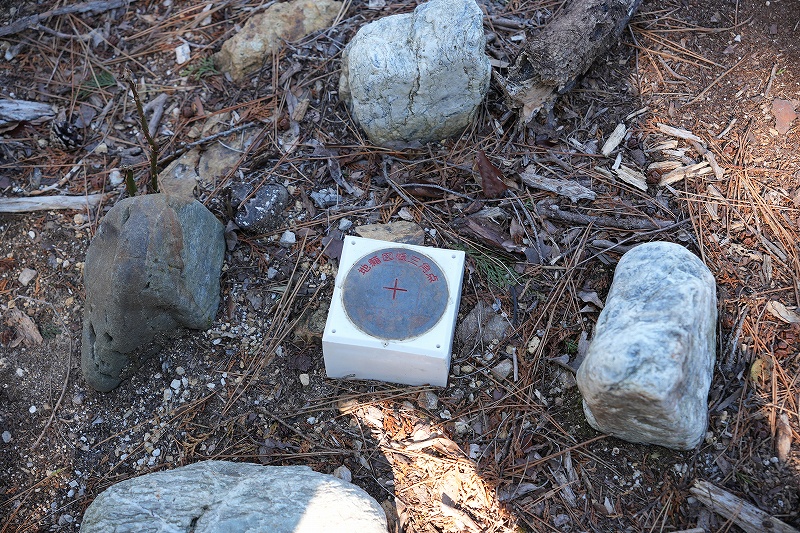 平石山から折り返し分岐を過ぎて中津峰山へと登って行くと、これで前回初めて見た真新しい『地積図根三角点』が設けられていた。