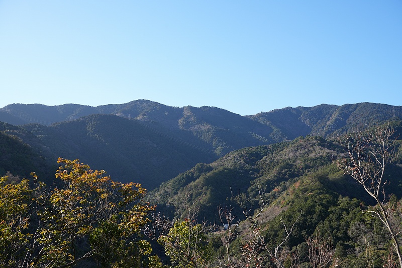 すると急に明るくなったかと思うと目の前に眺望が広がった。ここから続く尾根の奥に見えるのが、おそらく平石山と中津峰山。
