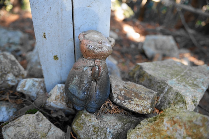 木々に囲まれた平石山は眺望はなかったが、山名標の足元に徳島のや山ではよく見かける『ヤッホー地蔵』が置かれていた。