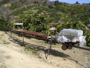 みかん畑や徳島の山の中でよく見られる、このモノレールは
