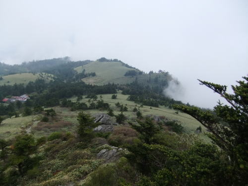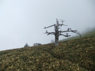 それでも時折ガスが切れて見える笹原は、2時間半の運転で来た甲斐がありました。