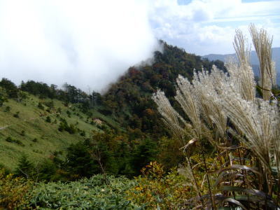 基点の手前で姿を見せた南尖峰もガスに半分隠れていました。