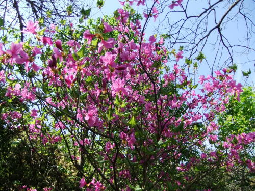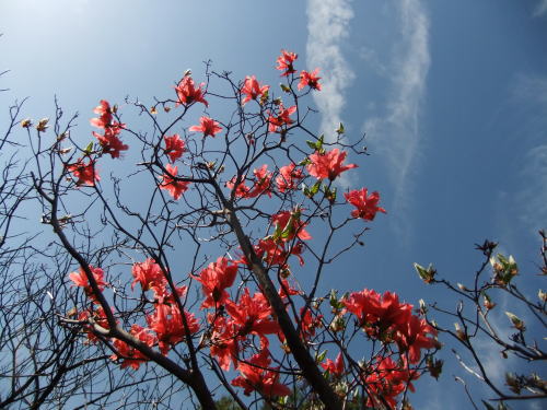 それでも青い空に輝くツツジの赤い花がとてもきれいで、