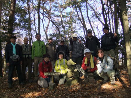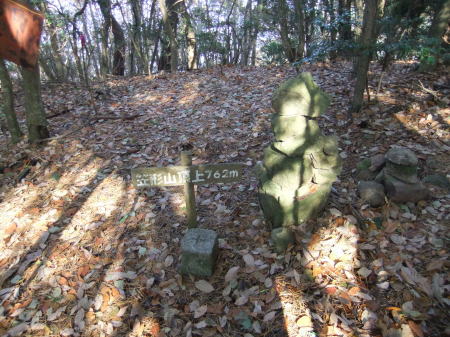 山頂は木々に囲まれて三角点がひっそりと佇んでいました。