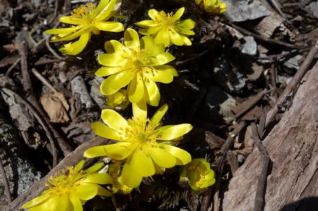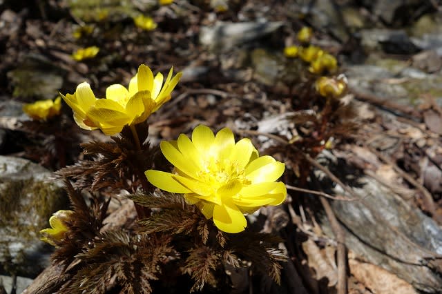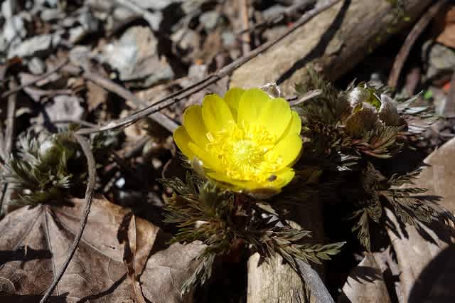 第二群生地では少し雪の残った横に綺麗に咲く福寿草を見つけました。