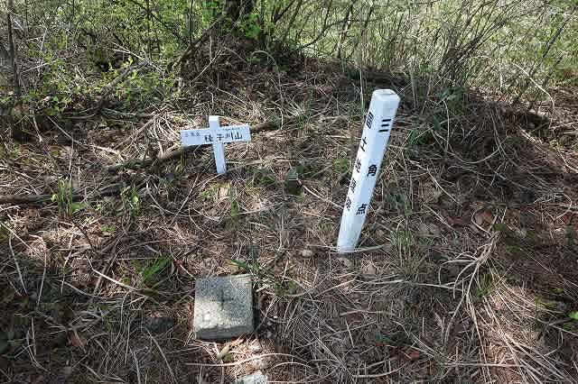 種子川山の三角点を過ぎると、鉄塔とその先に大きな崩壊地がありました。