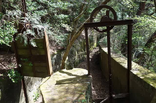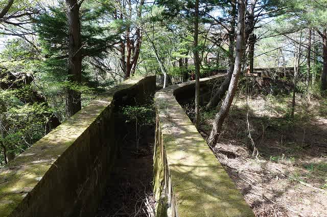 レンガで造られた池の突堤をしばらく歩くと導水路や排水路の跡も見え、