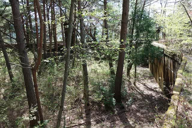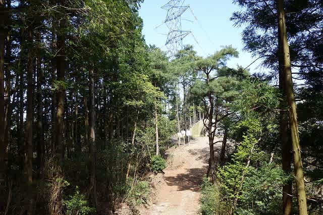 杉林から明るい尾根にでてしばらく歩くと生子山城跡に到着します。