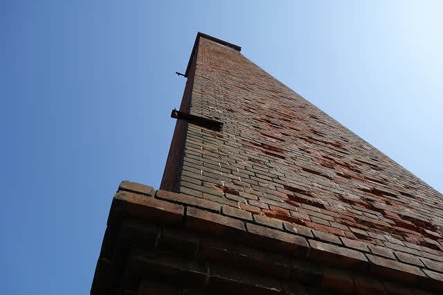 広場にはかつての精錬所跡にレンガ造りの高さ20mの煙突だけが残っています。