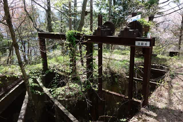 石ケ山丈分岐から少し下っていくと、さらに大きな遺跡の沈殿池跡があります。