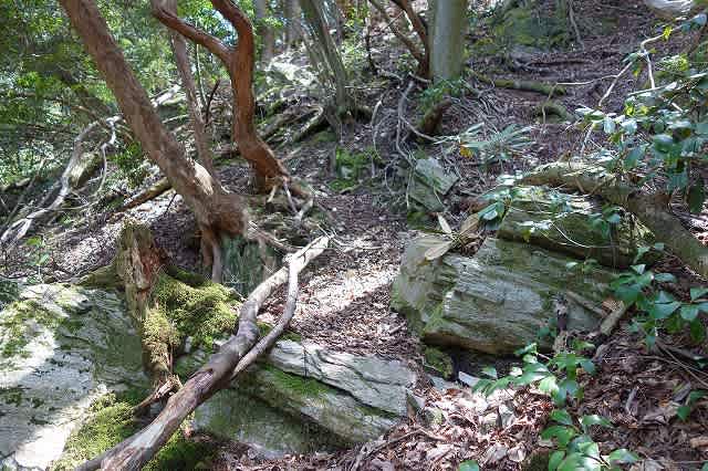 牛車道を東から西に尾根を回りこむようにして着いたのが石ケ山丈の分岐。