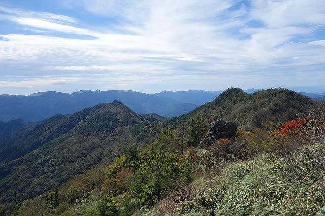 トラバースから鞍部に出ると剣山と次郎笈が目の前に現れます。