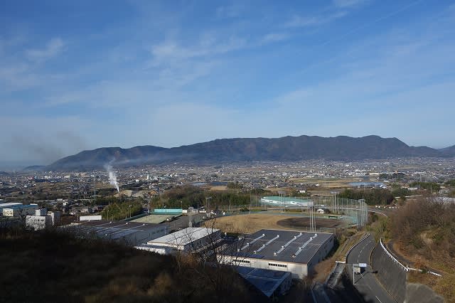 工業団地越しに豊中の街並みと七宝山が目の前に広がってきました。