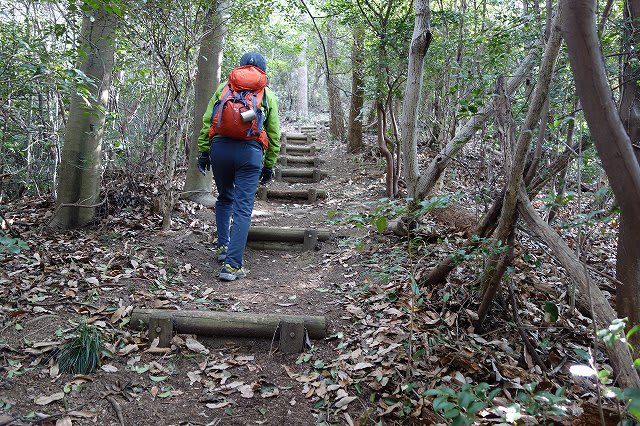 写真を撮った後すぐに折り返します。途中の階段からは、鳥越山の肩越しに