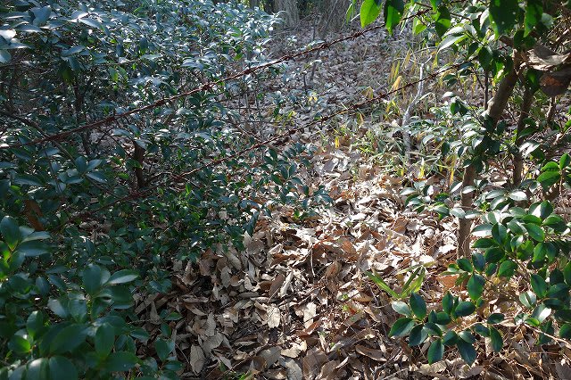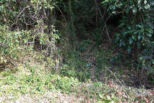 行き止まりから右に路肩を飛び降り山の中に入って行きます。