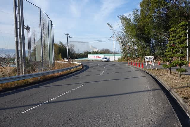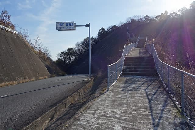 野球場を回り込むようにして道路を歩き、側道の階段を登って行くと