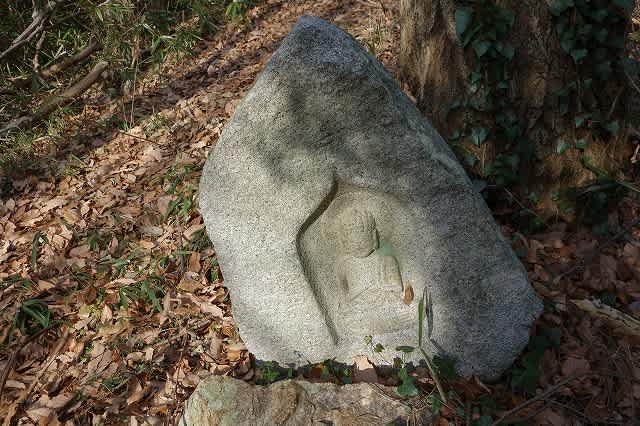 大岩の足元には石祠があり、岩には梵字が刻まれていました。