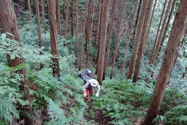 尾根に出る前が少し羊歯が密集していましたが、それでも前方に木々の間から