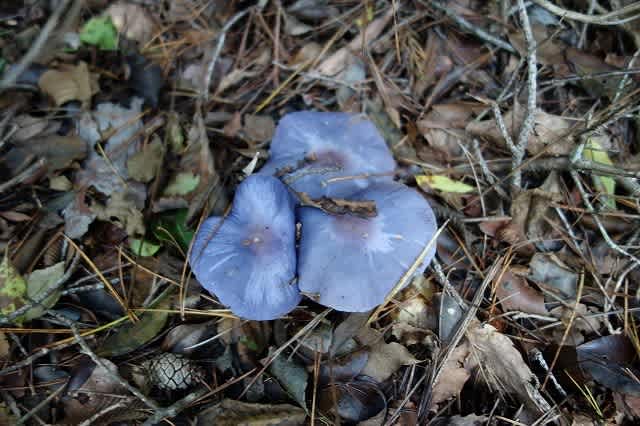道のあちらこちらにあきらかに毒キノコと思えるような紫色したキノコがたくさん生えています。