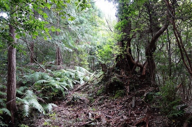 けっこう急な坂を羊歯や雑木の中を進んで行きます。