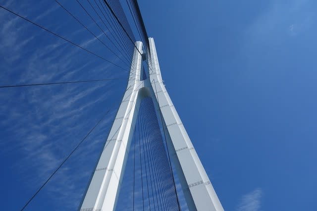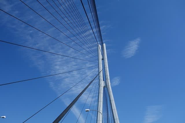 車の心配をすることなく安全に走れます。空は申し分のない青空で、初めてこんな大橋を