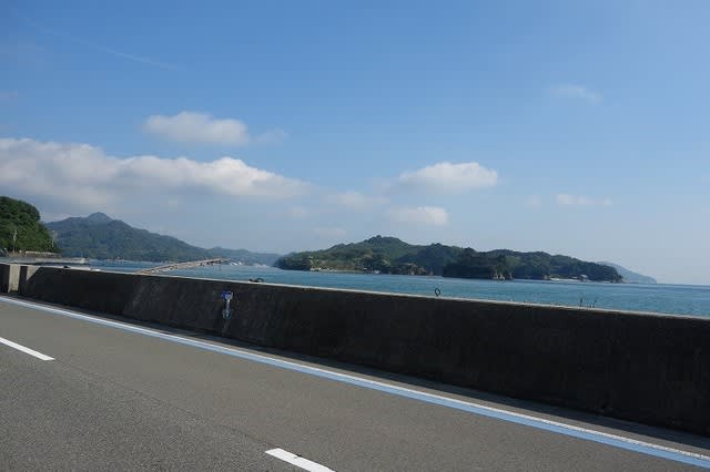 今日3つ目の大島橋を渡ると島の東側の海沿いの道になります。ここでも向かい風がきつく