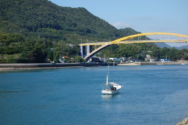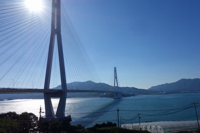 この橋の途中で愛媛県から広島県へと入ります。