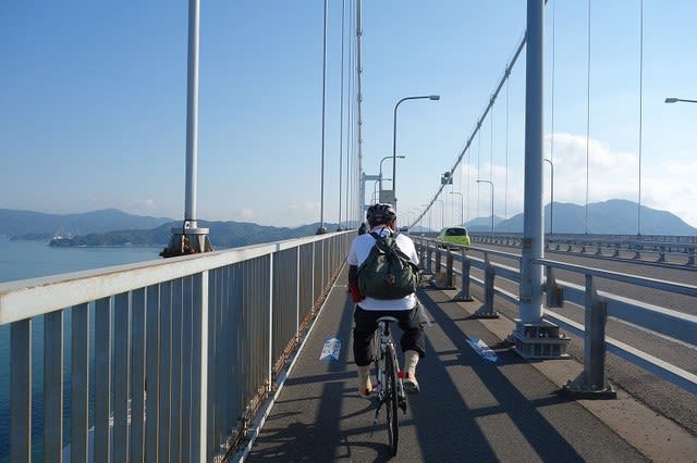しまなみ海道は自動車専用レーンと、原付・自転車・人のレーンが分かれていて、