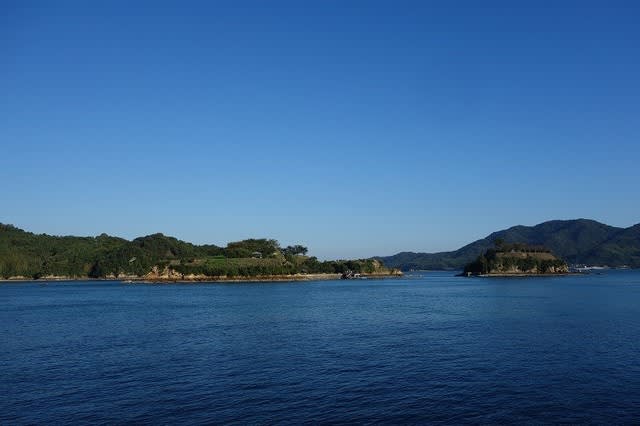 峠を下って行き大島の北側の宮窪港の湾岸を進んでいくと、港の対岸に村上水軍の居城が