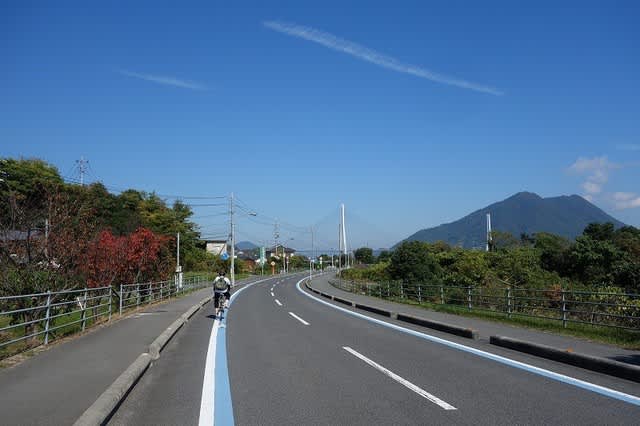 今日の往路の最後の多々羅大橋を渡ると生口島の西の海沿いの道になります。