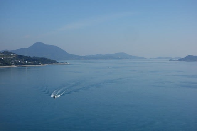 橋の上から見る周りの瀬戸内の景色も申し分なく、進んで行くとどんどんと