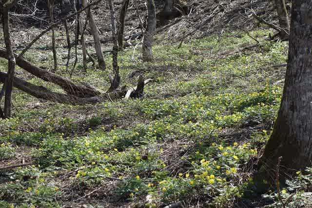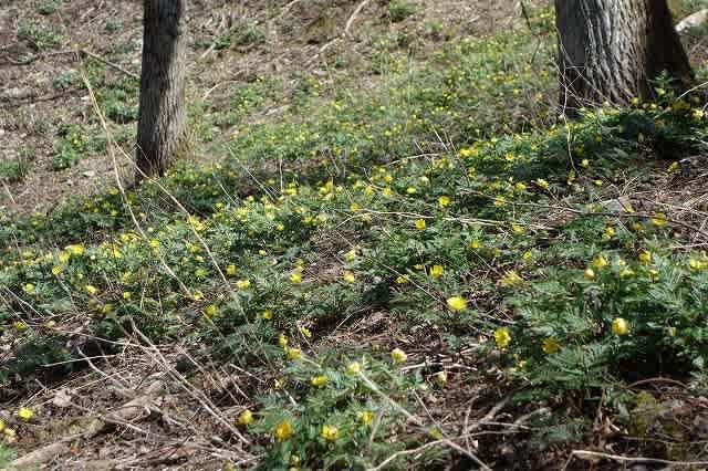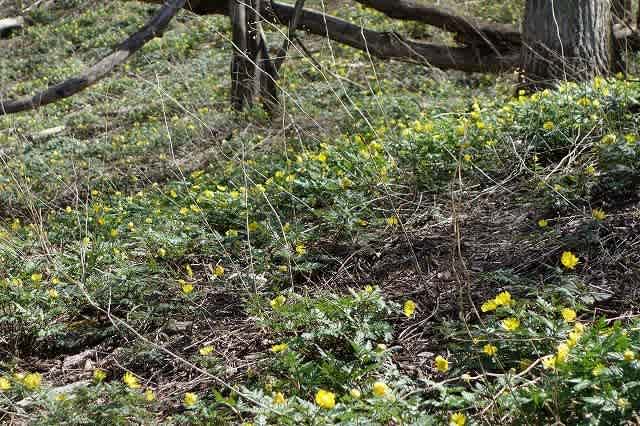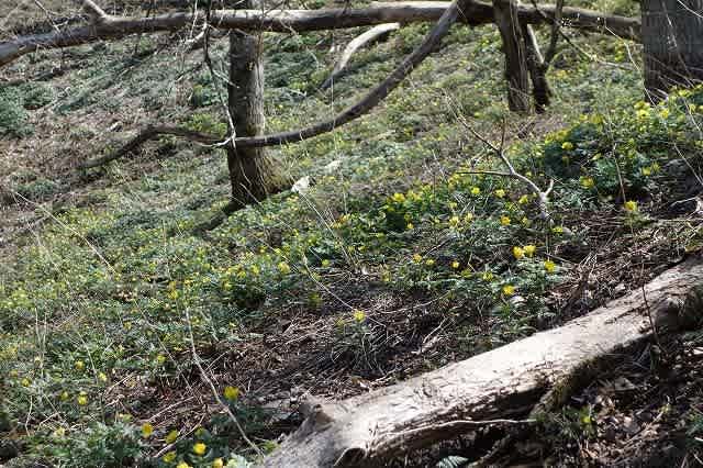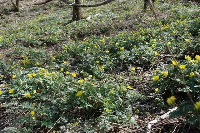 登ってきた時よりも日差しが当たり気温が上がってきたせいか、『福寿草』の群生地も