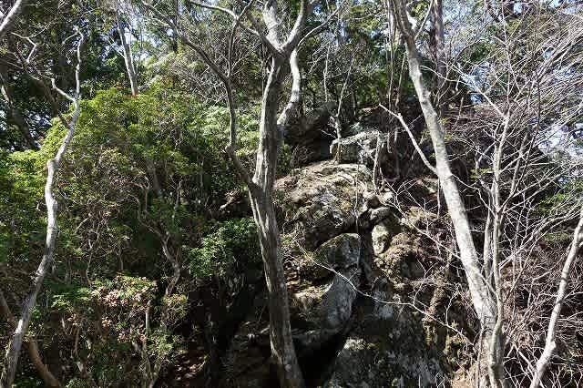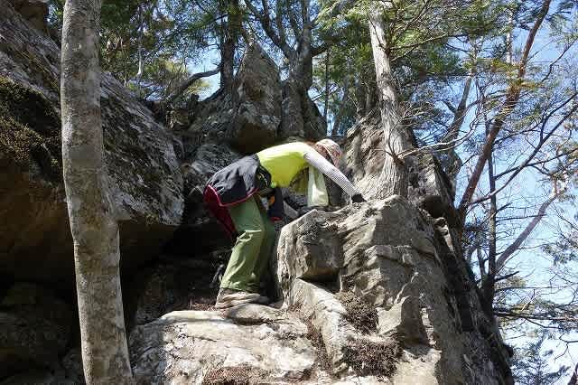 山頂から下り鞍部までくると目の前に大きな岩が現れました。
