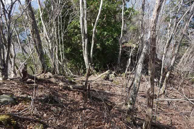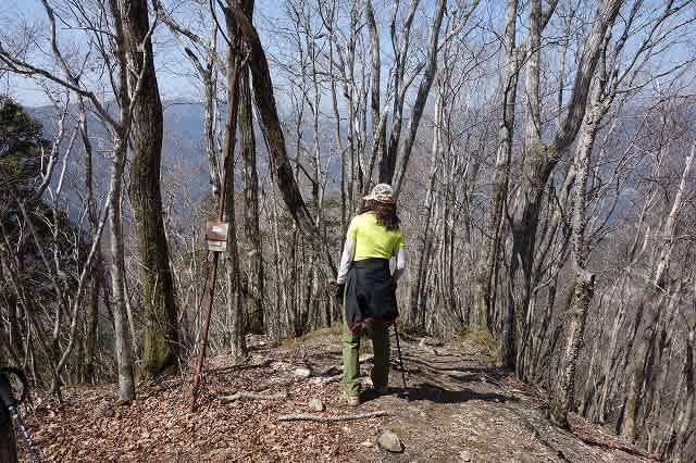 歩いて行くと尾根に出ました。尾根からは右に折れ少し歩くと『鶏足山』山頂です。