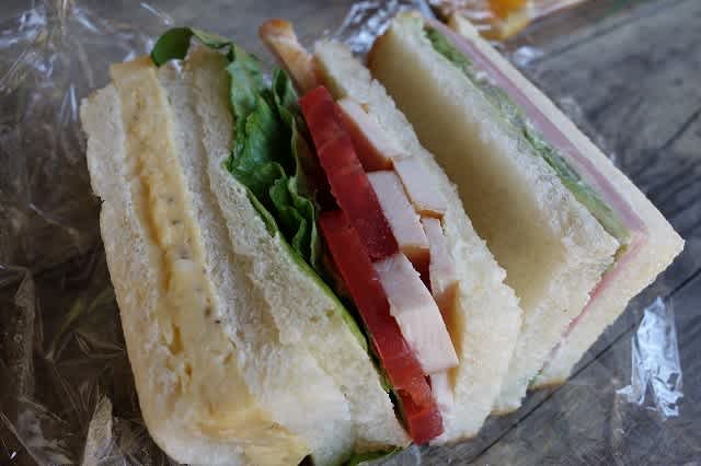 ハムや鳥肉の燻製の豪華なとても美味しいサンドイッチでした。ごちそうさまでした!