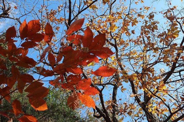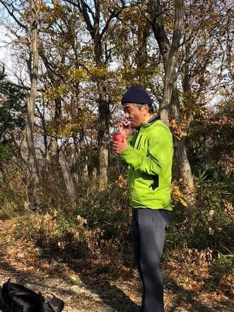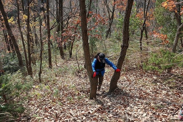 汗が噴き出てハァハァと息切れが続きます。周りにはまだきれいな紅葉が残っていますが、