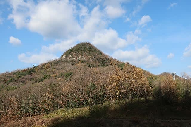 側道に沿って西に向かい歩いて行くと、中腹に岩肌を覗かせた『伽藍山』が