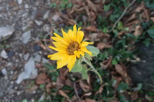 歩いて行くと、道の脇にこの季節には珍しいひまわり?