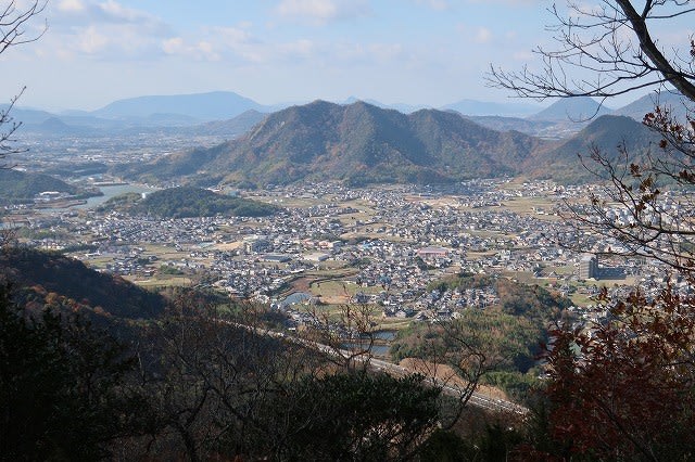 こんもり盛り上がったような山頂の北の岩場からは鬼無町から国分寺町の眺望が