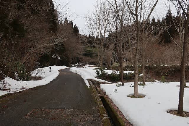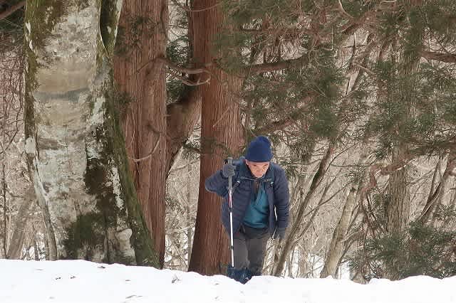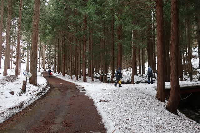 せっかくの雪道ですが、雪の上に杉の落ち葉が散乱していてあまりきれいではありません。