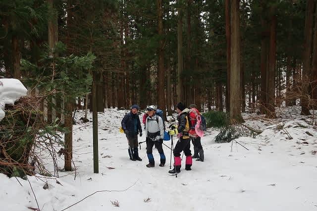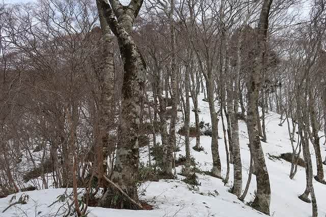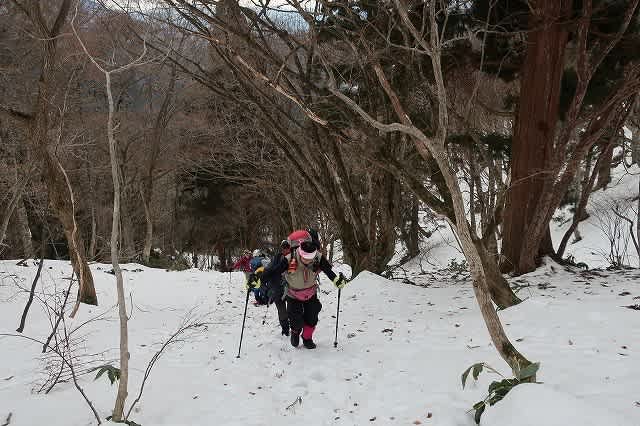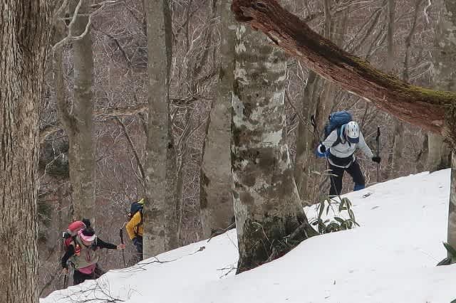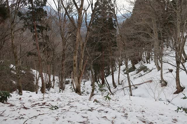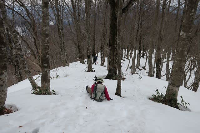 ほとんど直登の急な斜面を登って行きます。踏み跡から外れると膝の上くらいまで壺足になります。