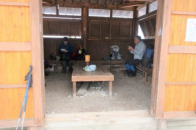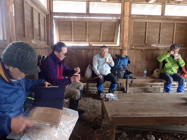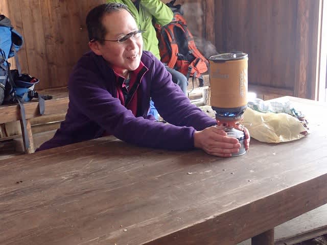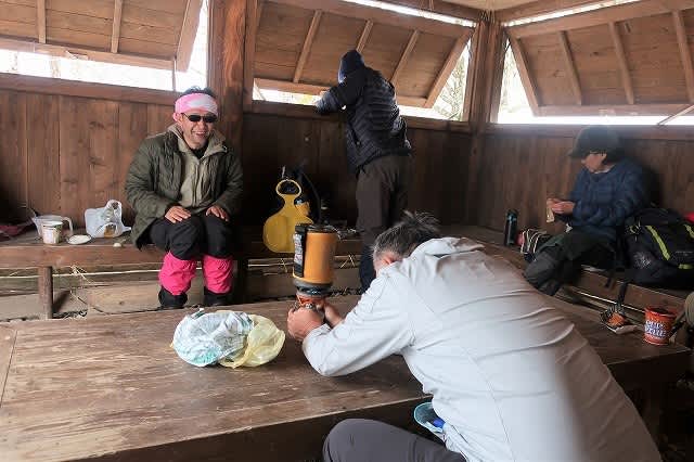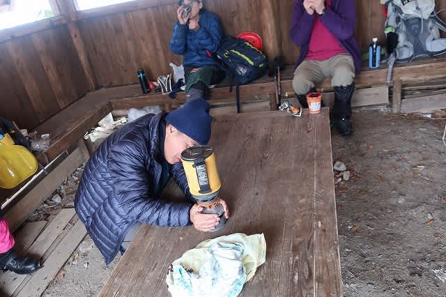 避難小屋まで降りてお昼ご飯にします。