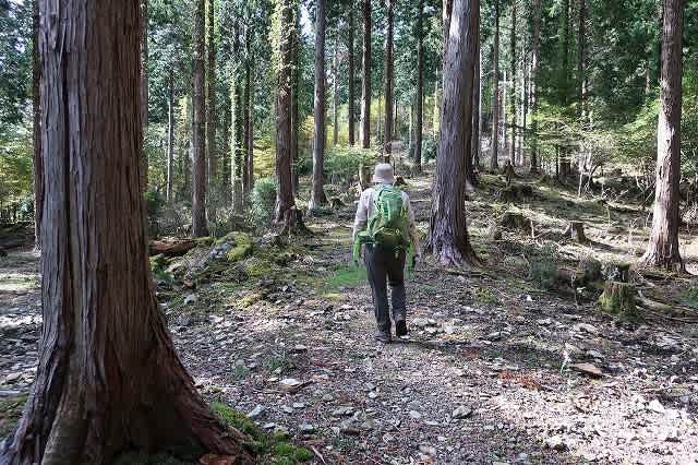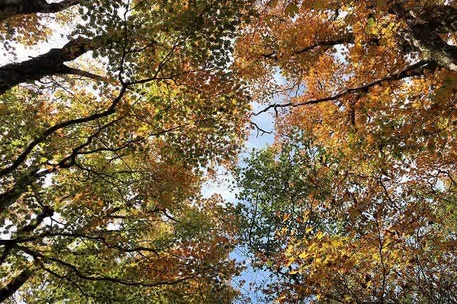 笹原から自然林の中に入り落ち葉を踏みしめながら歩いて行きます。