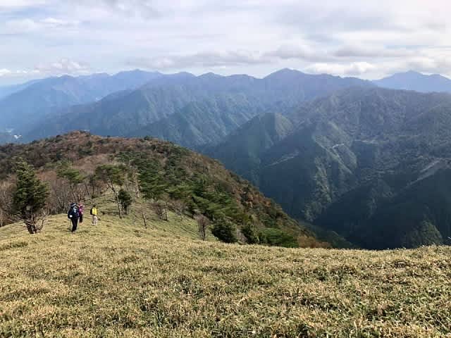 しばらく登ると左側に『剣山から一の森』の稜線が大きく横たわっています。
