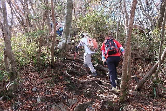 四差路からは多少のアップダウンで歩きやすい道が続き、山頂手前の根っこ坂を登りきると山頂に着きました。
