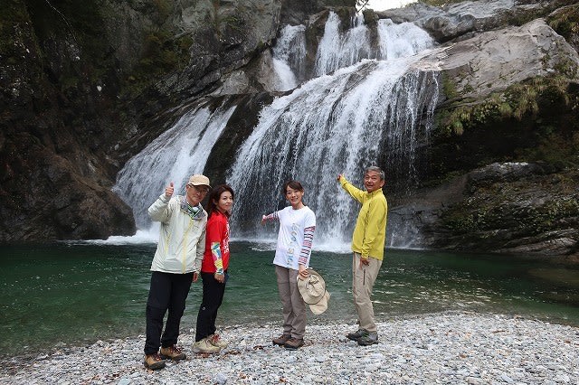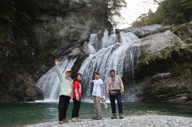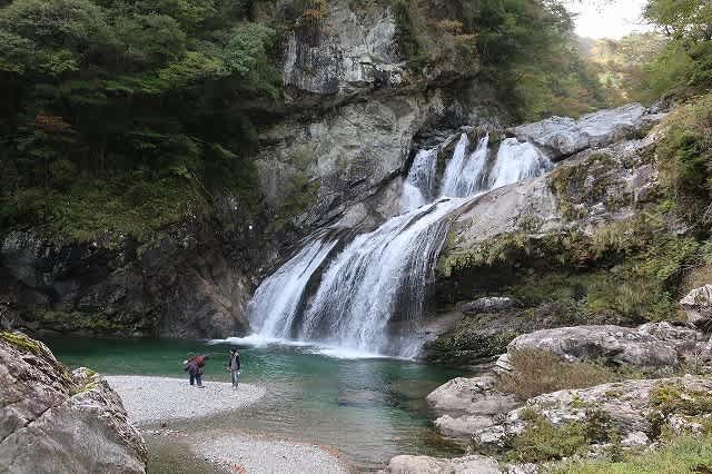 川床まで澄み切り透明な流れと大きな音をたてながら流れ落ちる滝を楽しんだ後、